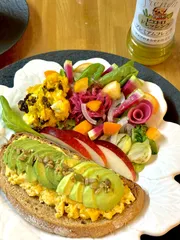 NEW ドレッシングとパットフッテ サラダにドレッシング。やっぱり酸味がいい♪ アボカドオープンサンドには、パットフッテon